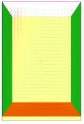 下面是一個示例,可以練習(xí)上述大部分選項。右側(cè)有一個供氣口,溫度為50.0 C。在底部,加熱器500 C通過對流和輻射提供熱量。在左側(cè),部分空氣被排出,表面溫度值為20 C。頂部是OPEN,正面和背面是INERT。 速度矢量如圖 3所示。