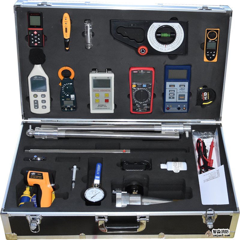 配置:不銹鋼感煙探測器試驗裝置;不銹鋼感溫探測器試驗裝置;水噴淋系統試水檢測裝置;消火栓系統試水檢測裝置;數字兆歐表;數字噪音計;數字微壓計;數字測距儀;紅外測溫儀;垂直度測定儀;多功能工程坡度測定儀;四合一測量儀(溫度、濕度、風速、照度);鉗形電流表;數字萬用表;數字秒表;附件:數字試電筆、鋼卷尺、連接桿、注入器、霧香液、扳手、充電器、電池桿、儀表測試筆、多功能刀。