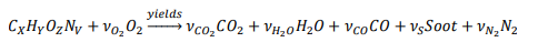 我們將假定按照FDS用戶手冊(第12章)中所述的化學計量簡單化學反應。此一般關系由下式給出: